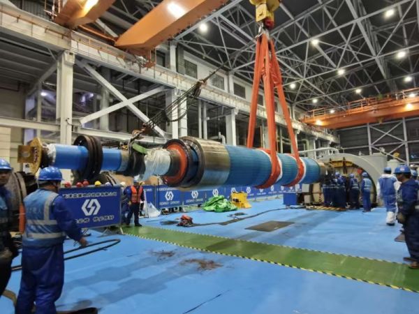 近日,在一声清脆的哨声中,鸿山热电公司#2发电机转子平稳落在支架上,万众瞩目的发电机抽转子工作圆满完成。为顺利完成抽转子工作,该设备维护部电气专业数月前就着手准备所需的材料和专用工具,并积极与发电机厂家沟通讨论,制定清单并进行清点整理,确保检修开始时所有必需的材料和工具都妥善到位。发电机抽转子完成后,定子膛内和转子的检修工作才能够顺利展开,这意味着发电机检修工作将正式启动。新年之际,#2发电机抽转子工作的圆满完成打响了新年检修攻坚“第一战”,鼓舞人心、以振兵威,为下一阶段发电机检查、试验、调试等检修项目提供了有力支撑,为决胜#2机组A修全面胜利奠定了坚实的基础。