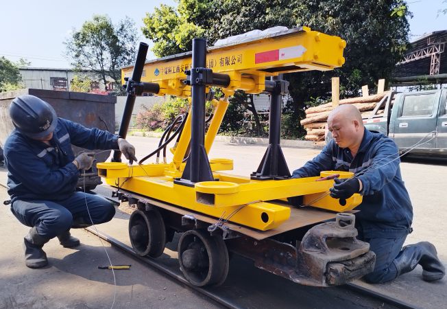 3月26日,该矿两位工人正在对矿井近日购进的一台矿用全液压坑道钻机机座进行装车固定,即将运送到井下掘进队伍中投入使用。据了解,全液压坑道钻机可用于煤矿瓦斯抽采钻孔施工,也可用于井下探放水、地质构造和煤层厚度探测、煤层注水。
